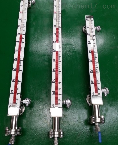 磁翻板液位計是本公司引進(jìn)、吸收國外同類產(chǎn)品,并加以吸收、消化、提高,按原化學(xué)工業(yè)部頒布的磁性液位計標(biāo)準(zhǔn)T21584-95研制生產(chǎn)的產(chǎn)品??捎糜诟鞣N塔、罐槽、球形容器和鍋爐等設(shè)備的介質(zhì)液位檢測。該系列磁性液位計可以做到高密封,防泄漏和適應(yīng)高壓高溫、腐蝕性條件下的液位測量,具有可靠的安全性,它彌補(bǔ)了玻璃板(管)液位計指示不清晰,易破碎的不足,不受高、低溫度劇變的影響,不需多組液位計的組合。全過程測量無盲區(qū),顯示醒目、讀數(shù)直觀,且測量范圍大。特別是現(xiàn)場指示部分,由于不與液體介質(zhì)直接接觸,所以對高溫、高壓、高粘度、有毒有害、強(qiáng)腐蝕性介質(zhì),更顯其優(yōu)越性。因此,它比傳統(tǒng)的玻璃管,板式液位計具有更高的可靠性、安全性、先進(jìn)性、實(shí)用性。