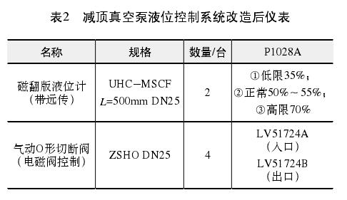 設(shè)備投用以來,出現(xiàn)減頂真空泵液位控制系統(tǒng)存在控制偏差大、設(shè)備故障多、控制失靈現(xiàn)象頻生等種種問題,已經(jīng)到了不能滿足工藝要求,經(jīng)常性需要人為進(jìn)行調(diào)整,控制系統(tǒng)的精準(zhǔn)度嚴(yán)重失準(zhǔn),嚴(yán)重影響裝置的平穩(wěn)運(yùn)行。2011年8月大檢修時(shí),針對分離器液位控制系統(tǒng)的液位測量不準(zhǔn)、電磁閥膜片腐蝕、液位開關(guān)控制失靈等問題,開展了系統(tǒng)的升級改造,將改造后由防腐磁翻板液位計(jì)組成的一套液位控制系統(tǒng)應(yīng)用于生產(chǎn),經(jīng)過長達(dá)5年的現(xiàn)場運(yùn)行結(jié)果表明:液位控制得到有效優(yōu)化,降低了系統(tǒng)故障率,提高了自控水平,確保了生產(chǎn)裝置的長周期平穩(wěn)運(yùn)行。