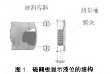 磁翻板是顯示液位的部分(見圖 1)。磁翻板內(nèi)的翻珠內(nèi)裝有柱狀的磁鋼,而所有的翻珠均勻布置于鋁制的卡槽內(nèi),當液位計中液位上升時,由于磁鋼受浮子內(nèi)磁場的影響帶動翻珠由白色翻轉(zhuǎn)為紅色;反之液位下降時,翻珠由紅色翻轉(zhuǎn)為白色。這樣磁翻板在無需任何電源的情況下就可以反應(yīng)出容器內(nèi)液位的變化。