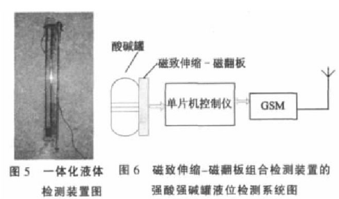 目前,工業(yè)用濃酸、濃堿液罐內(nèi)的液位檢測手段,主要有超聲波液位檢測儀、磁翻板液位計(jì)、接觸式防腐蝕液位檢測裝置等。2007年05月,作者參觀了山西省陽城電廠,對陽城電廠的酸堿罐液位檢測裝置進(jìn)行了考察;該廠現(xiàn)有大小20余個(gè)酸堿罐中酸堿液位的檢測,大都采用超聲波液位計(jì)與磁翻板液位計(jì)相結(jié)合的方式。超聲波液位計(jì)對酸堿液位信息通過線路傳輸?shù)接?jì)算機(jī),進(jìn)行實(shí)時(shí)觀測。但據(jù)該廠技術(shù)人員介紹,超聲波液位計(jì)有一個(gè)致命缺點(diǎn),就是安裝在罐頂部的超聲波探頭很容易被酸霧或堿霧籠罩,嚴(yán)重影響了測量準(zhǔn)確度,需要工作人員定時(shí)對超聲波探頭進(jìn)行清洗。磁翻板液位計(jì)沒有數(shù)據(jù)的自動(dòng)傳輸功能,需要工作人員定時(shí)地去觀察液位刻度。為了確保酸堿液位數(shù)據(jù)的可靠性,該廠技術(shù)人員提出增加一套液位檢測裝置的要求,并能實(shí)現(xiàn)數(shù)據(jù)的自動(dòng)化遠(yuǎn)程傳輸。為此,作者利用磁致伸縮傳感器和磁翻板相結(jié)合的辦法,以求實(shí)現(xiàn)酸堿液位的非接觸式測量,并利用單片機(jī)和GSM技術(shù),實(shí)現(xiàn)磁致伸縮液位信號(hào)的無線傳輸。
