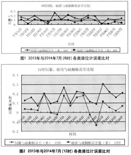 由以上兩圖得知,伺服液位計(jì)誤差值曲線較高,液位漲浮較大,計(jì)量誤差*髙達(dá)+0.3m,而磁致液位計(jì)誤差值曲線相對(duì)穩(wěn)定,液位漲浮較小,計(jì)量誤差在±0.2m之間,較為精準(zhǔn)。