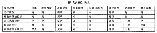 對(duì)市場(chǎng)中應(yīng)用較為廣泛的幾類液位計(jì)綜合對(duì)比。