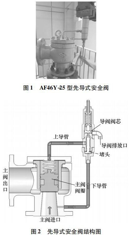鍋爐水液位計常見的故障包括: 主閥導(dǎo)閥泄漏、導(dǎo)閥超壓不動作、主閥未隨導(dǎo)閥動作。主閥導(dǎo)閥泄漏失效原因: 密封面臟污或損傷,零部件卡阻、密封墊圈老化變形; 導(dǎo)閥超壓不動作失效原因: 導(dǎo)閥密封面銹蝕粘合或材料變形、導(dǎo)閥彈簧過緊或卡阻、導(dǎo)閥下導(dǎo)管堵塞; 主閥未隨導(dǎo)閥動作失效原因: 主閥運動卡阻、導(dǎo)閥排氣量過小。然而,安全閥起跳不回座故障在試驗過程及工業(yè)現(xiàn)場也是非常常見的,國內(nèi)對于鍋爐水液位計起跳不回座失效分析的相關(guān)研究較少。本研究以某公司生產(chǎn)的 AF46Y-25 型鍋爐水液位計為研究對象,研究導(dǎo)閥結(jié)構(gòu)并分析其動作過程。在對其開展動作性能試驗時,發(fā)現(xiàn)該安全閥實際回座壓力遠低于標(biāo)準(zhǔn)要求,排放時間過長,回座失效。因此,對其進行受力分析,以探討回座失效的原因。