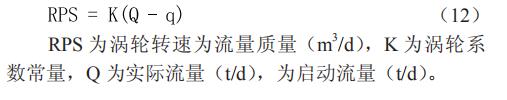 ①吸汽量。計算射孔層位吸汽量,可以通過六參數(shù)儲罐液位計的渦輪流量計實現(xiàn)。忽略低流速時渦輪的非線性響應(yīng)及密度對渦輪轉(zhuǎn)速的影響,則渦輪轉(zhuǎn)速 RPS 與流速成正比 :