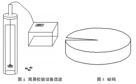 因為振弦式傳感器,*重要的核心就是弦,從基本原理入手,采用加 載砝碼的方法進行率定,每個砝碼固定重量為 300g,*多添加砝碼個數(shù) 為 6 個,總量可達 1800g。砝碼較多時,需要很長時間穩(wěn)定。為了提高系統(tǒng) 穩(wěn)定性,減少系統(tǒng)穩(wěn)定時間,因此對簡易校驗裝置進行改進,如圖 4、圖 5所示。
