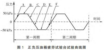 正負(fù)壓油箱疲勞試驗(yàn)臺(tái)的試驗(yàn)曲線如圖1所 示,工作原理如圖2所示。