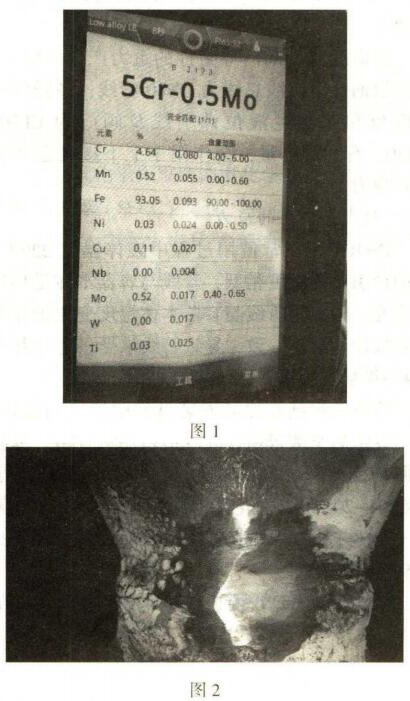 (1)對該段管線進(jìn)行能譜檢測,確認(rèn)該管線材質(zhì)為lCr5Mo,管線材質(zhì)無問題。