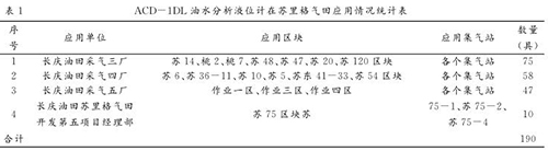 在試驗成功的基礎上,蘇里格氣田對 ACD-1DL 油水分析液位計進行了全面推廣,截止到 2014年 11 月底,共在 87 座集氣站應用 190 臺,各單位應用情況統(tǒng)計見表 1 。