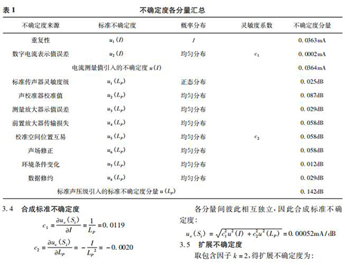 主要測(cè)量設(shè)備與 JJG 188-2017《聲級(jí)計(jì)》中要求一致,增加數(shù)字電流表: 在 20 ~ 8000Hz 范圍內(nèi),測(cè)量不確定度不大于 1. 0% ( k = 2) 。