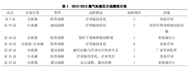 1、集氣站液位計運行現(xiàn)狀
