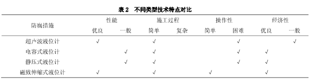 對以上幾種液位計,從性能、施工情況、操作性以及經(jīng)濟性等方面進行技術(shù)比較,見表2: