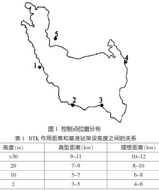 在該水庫工程當(dāng)中,測量人員采用的坐標(biāo)系統(tǒng)是1980西安坐標(biāo)系。在具體的測量過程之中,測量人員運(yùn)用2臺南方GPS儀器來收集相應(yīng)的測量數(shù)據(jù),并使用1臺徠卡全站儀、一臺GPS-RTK來完成相應(yīng)的數(shù)據(jù)采集工作。對水庫進(jìn)行勘測定界的主要目的是針對淹沒線作用的土地范圍,對界樁實(shí)施測量與放樣,結(jié)合設(shè)計(jì)水位的高程,做好界樁拔放工作。因?yàn)樵摰貐^(qū)的地形比較陡峭,故測量人員決定采用雙基站方法開展測量工作。該地區(qū)共有5個(gè)控制點(diǎn),具體的位置分布見圖1。另外,因?yàn)镽TK數(shù)據(jù)鏈?zhǔn)褂贸哳l電磁波,數(shù)據(jù)鏈所發(fā)生的電磁波頻率比較高,能夠得到456MHz,為了保證測量數(shù)據(jù)更為精確,測量人員可以將基準(zhǔn)站設(shè)置在測區(qū)的zui高位置,并結(jié)合RTK作用距離和基準(zhǔn)站架設(shè)高度之間的關(guān)系,合理控制基準(zhǔn)站的架設(shè)高度,RTK作用距離和基準(zhǔn)站架設(shè)高度之間的關(guān)系見表1。