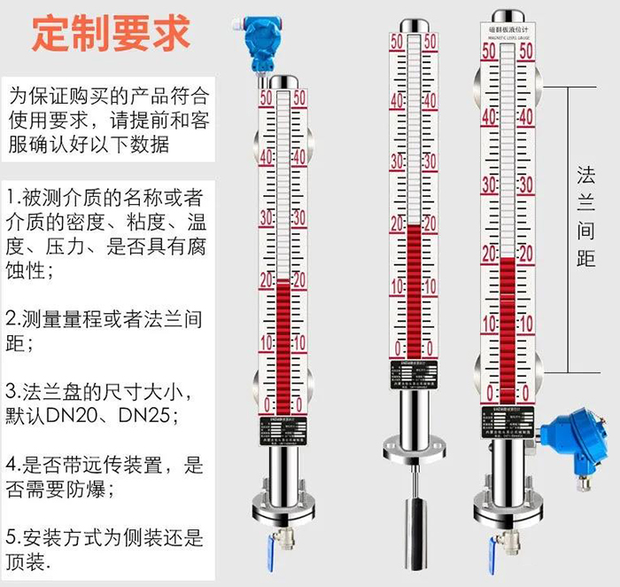 磁翻柱液位計選型其它注意事項: