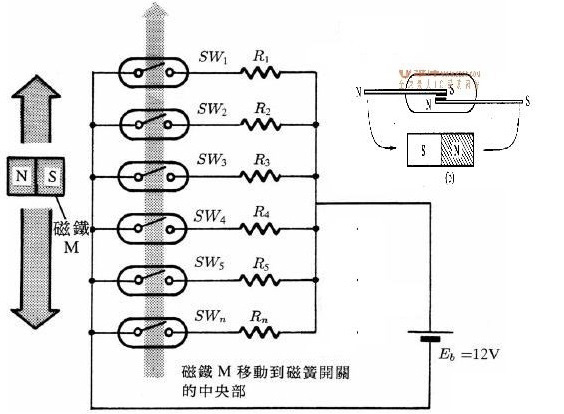 磁變送器(干簧管變送器):與磁開關(guān)的原理相似,它是捆綁在浮筒外面。當(dāng)浮筒里面的浮子隨著液位變化時(shí),上下移動(dòng),浮子中的磁鋼所在的位置將改變干簧管中磁開關(guān)的狀態(tài)(閉合),只有在磁鋼作用范圍內(nèi)的干簧管閉合,其它都處于開路狀態(tài),從而改變回路的電阻值,或者說是改變了輸出回路的阻值。浮子的位置相當(dāng)與電位器的滑動(dòng)點(diǎn),隨著浮子的位置變化,引起上下電阻的抽頭(上下電阻值)變化,液位越低,電阻值越大,越高電阻越小(出線在頂部)。由于回路是恒(定電)流,再通過電流/電壓轉(zhuǎn)換,進(jìn)而可以轉(zhuǎn)化為4~20mA/HART 等信號(hào)。液位變化,液位旁邊的磁開關(guān)閉合,電阻值變化,輸出電壓隨之變化。
