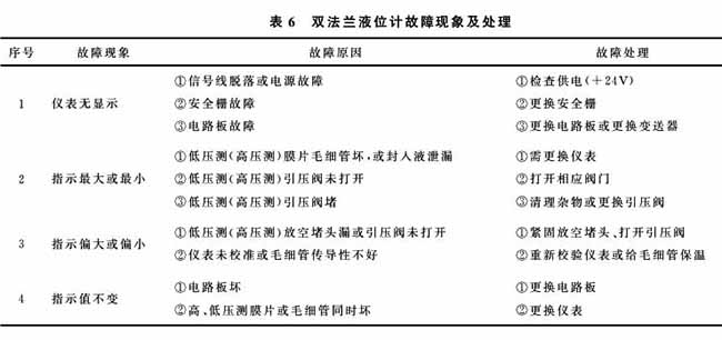 因老式玻璃板式液位計沒有詳細刻度,該數(shù)據(jù)為粗略目視值。另外,2012年新建20萬t/a合成氨系統(tǒng)2000mj液氨球罐上安裝有一臺LevelflexFMP51纜式導(dǎo)波雷達液位計(位號:LT1201A)和一臺磁翻板液位計,該信號均引人DC'.S顯示。在開始安裝調(diào)試過程中發(fā)現(xiàn)雷達液位計與磁翻板液位計顯示不一致,經(jīng)檢查發(fā)現(xiàn)導(dǎo)波雷達液位計取樣管原始高度不正確,經(jīng)重新調(diào)整并對其相關(guān)參數(shù)進行設(shè)定后測量顯示一致。長期穩(wěn)定運行,給工藝控制提供了準確數(shù)據(jù),滿足了工藝要求,有效地保障了設(shè)備和人身安全。2014年4月儀表人員抽樣比測記錄數(shù)據(jù),見表2所示。
