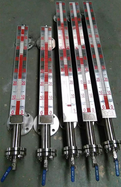 根據(jù)浮力原理,浮子在測量管內(nèi)隨液位的升降而上、下移動,浮子內(nèi)的永久磁鋼通過耦合作用,驅(qū)動紅、白色翻柱翻轉(zhuǎn)180°,液位上升時翻柱由白色轉(zhuǎn)為紅色,下降時由紅色轉(zhuǎn)為白色,從而實(shí)現(xiàn)液位指示。