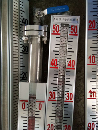 液位計根據(jù)浮力原理,浮子在測量管內(nèi)隨液位的升降而上下移動,浮子內(nèi)的永久磁鋼通過磁耦合作用,驅(qū)動紅、白色翻柱翻轉(zhuǎn)180’液位上升時,翻柱由白色轉(zhuǎn)為紅色,下降時,翻柱由紅色轉(zhuǎn)為白色,從而實現(xiàn)液位的指示。