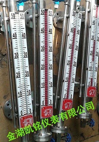 根據(jù)浮力原理,浮子在測量管內(nèi)隨液位的升降而上、下移動,浮子內(nèi)的永久磁鋼通過耦合作用,驅(qū)動紅、白色翻柱翻轉(zhuǎn)180°,液位上升時翻柱由白色轉(zhuǎn)為紅色,下降時由紅色轉(zhuǎn)為白色,從而實(shí)現(xiàn)液位指示。