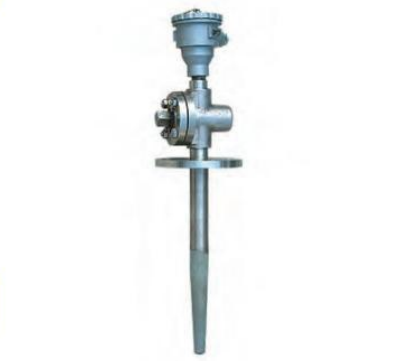 ②鎧裝熱電偶直徑d≤φ5mm,并裝有防濺式或防水式接線盒的產(chǎn)品,熱電偶露出設(shè)備部分。用戶在安裝時必須加裝支架等輔助支撐,增加其剛度,確保緊固,防止接線盒受振動而引起搖擺,損壞熱電偶。